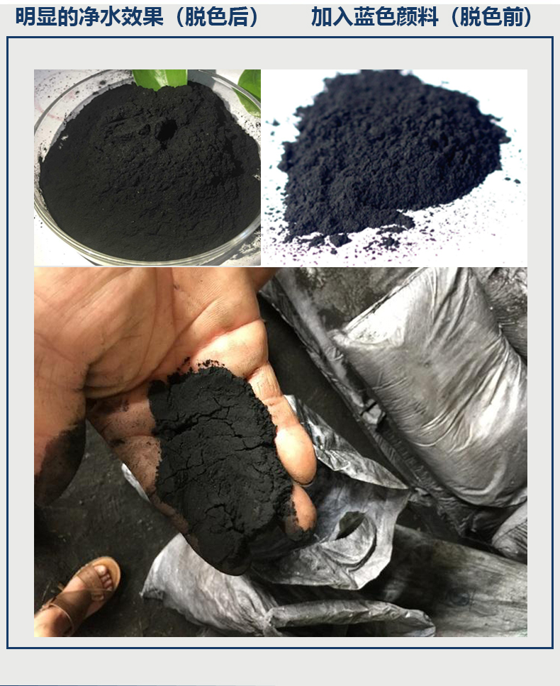脫色粉狀活性炭:活性炭具有一種使著色液體變淡或無色的獨特能力,其實是由于活性炭對彩色液體顏料的吸附作用分子所致。由于活性炭的性質,它在制糖工業生產中廣泛應用于紅糖、白糖的生產過程。