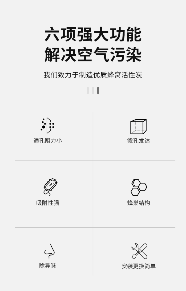 4、活化溫度的影響:活化是蜂窩活性炭的造孔過程,也就是決定了蜂窩活性炭吸附能力的強弱,活化又分水蒸氣活化法、煙氣活化法、空氣活化法,不同的方式對于活化溫度要求不同,蜂窩活性炭廠家燒制出來的蜂窩活性炭吸附能力也就不一樣。