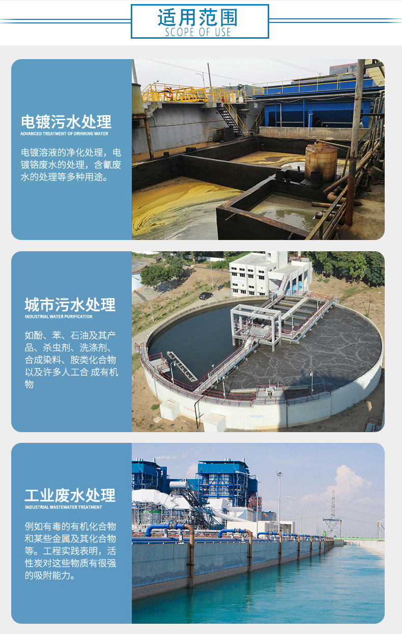 印染污水處理活性炭的特點是含大量的有機污染物、色澤深、偏堿性,對印染廢水處理首選活性炭吸附法,活性炭宜選擇過渡孔發(fā)達的炭種。此外,灰分也有影響,灰分愈小,吸附性能愈好;吸附質分子的大小與炭孔隙直徑愈接近,愈容易被吸附;吸附質濃度對活性炭吸附量也有影響。在一定濃度范圍內,吸附量是隨吸附質濃度的增大而增加的。另外,水溫和pH值也有影響。吸附量隨水溫的升高而減少,隨pH值的降低而增大。故低水溫、低pH值有利于活性炭的吸附。