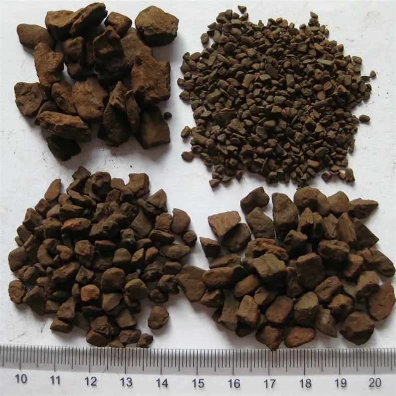 天然錳砂濾料用途;天然錳砂除鐵是一種接觸催化除鐵工藝,適合于地下水含鐵量小于20mg/l的除鐵。天然錳砂中含的高價錳能將水中的二價鐵氧化成三價鐵,同時在表面形成有催化作用的“活性濾膜”,進一步提高了除鐵效果。含鐵水經曝氣后,只經天然錳砂一次過濾,就能完成全部除鐵過程,常用于飲用水除鐵、除錳過濾裝置,地下水除鐵除錳凈化水質使用。