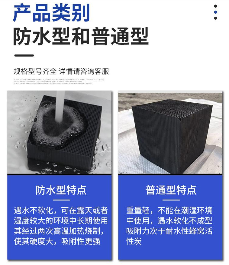 現(xiàn)在市場上用于廢氣處理活性炭有柱狀活性炭和蜂窩活性炭。