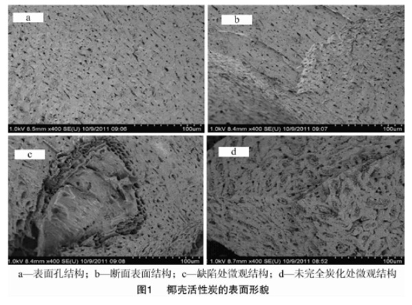 煤質活性炭與椰殼活性炭均未經過進一步處理。掃描電子顯微鏡型號為Hitachi s-4800。