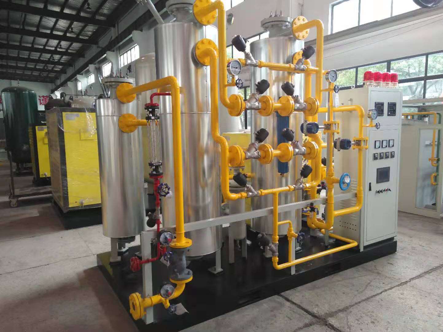 空氣壓縮機壓縮后,除塵、除油、干燥后,進入空氣儲罐,通過空氣進氣閥、左吸氣閥進入左吸附塔,塔壓升高,壓縮空氣中的氧分子被碳分子篩吸附,未吸附氮通過吸附床,通過左吸氣閥、氮氣閥進入氮氣儲罐,稱為左吸,持續(xù)幾十秒。食品小型制氮機。左吸過程結(jié)束后,左吸附塔與右吸附塔通過上下均壓閥連接,使兩塔壓力平衡。該過程稱為均壓,持續(xù)時間為2~3秒。均壓后,壓縮空氣通過空氣進氣閥和右吸進氣閥進入右吸附塔。壓縮空氣中的氧分子被碳分子篩吸附,富氮通過右吸出氣閥和氮氣產(chǎn)氣閥進入氮氣儲罐。這個過程叫右吸,持續(xù)幾十秒。同時,左吸附塔中碳分子篩吸附的氧氣通過左排氣閥降壓釋放回大氣中,稱為解吸。相反,左塔吸附時,右塔也在解吸。為了使分子篩中降壓釋放的氧氣完全排放到大氣中,氮氣通過常開的反吹閥吹走吸附塔,將吸附塔中的氧氣吹出吸附塔。這個過程被稱為反吹,它是同時進行的。食品級制氮機。右吸后,進入均壓過程,然后切換到左吸過程,一直循環(huán)。