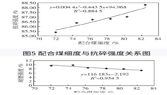 配合煤細(xì)度對配合煤堆密度、焦炭機(jī)械強(qiáng)度、熱強(qiáng)度及焦炭產(chǎn)量的影響, 用來指導(dǎo)實際生產(chǎn);在一定條件下, 按照實際使用的配比, 進(jìn)行不同細(xì)度下配合煤, 尋找配合煤細(xì)度與焦炭質(zhì)量、產(chǎn)量的對應(yīng)關(guān)系。