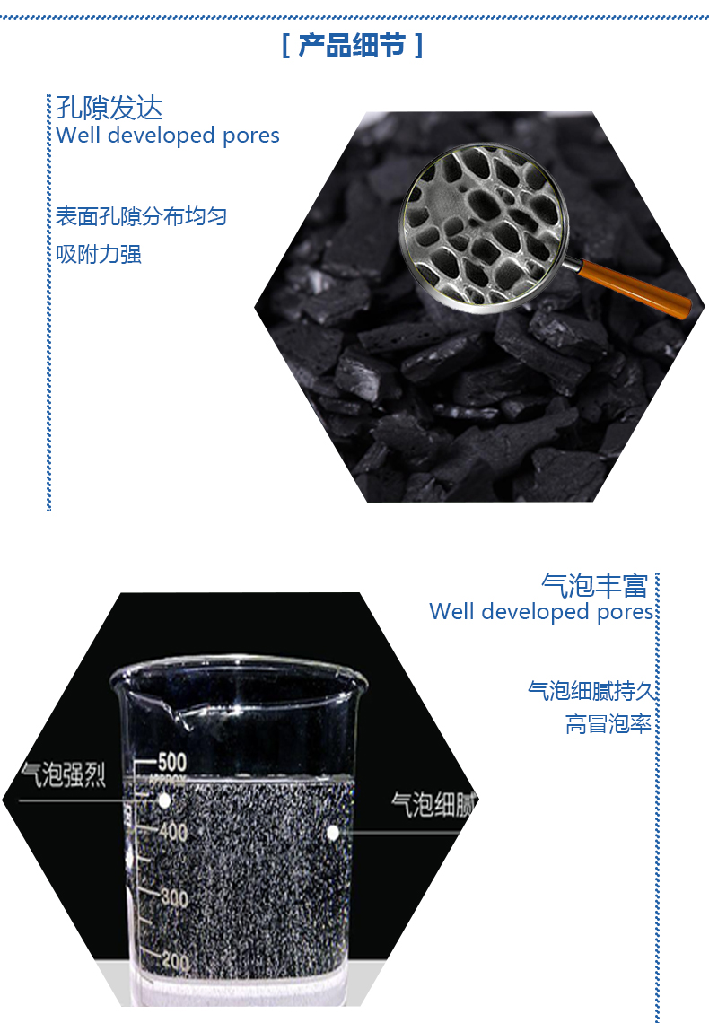6、 污水處理椰殼活性炭:用于去除水中農(nóng)用化學(xué)品、有機鹵化物及鐵銹等,還可脫除污水中氨、胺、H?S及醛類化合物。污水處理活性炭對于水中溶解性的有機物有頁很強的吸附能力。